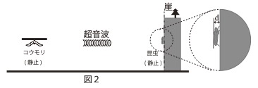 超音波を発した。超音波は昆虫の表面と崖の表面で反射した。次に