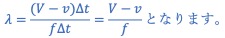 Δt秒で超音波はVΔt進む、この間コウモリはvΔt進んでいるのでL=VΔt−vΔt=(V−v)Δtとなります。