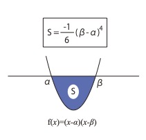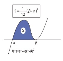 \( S=\displaystyle\int_{\alpha}^{\beta}(x-\alpha)(x-\beta)^2dx=\dfrac{1}{12}(\beta-\alpha)^4 \)