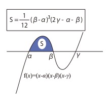 \( S=\displaystyle\int_{\alpha}^{\beta}(x-\alpha)(x-\beta)(x-\gamma)dx=\dfrac{1}{12}(\beta-\alpha)^3(2\gamma-\alpha-\beta) \)